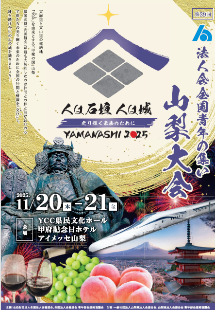 - 活動報告 【全国青年の集い 山梨大会11/20㈭-21(金)開催】全国より約1800名の青年部会員が一堂に会し、講演、式典、分科会、懇親会が執り行われました。青年部会活動の柱である租税教育活動と健康経営プロジェクト及び会員増強について、全国の青年部会が取り組んでいる活動事例等の情報共有が図られました。今後も全国の法人会青年部会と連携し、租税教育活動及び健康経営プロジェクトを積極的に展開してまいります。